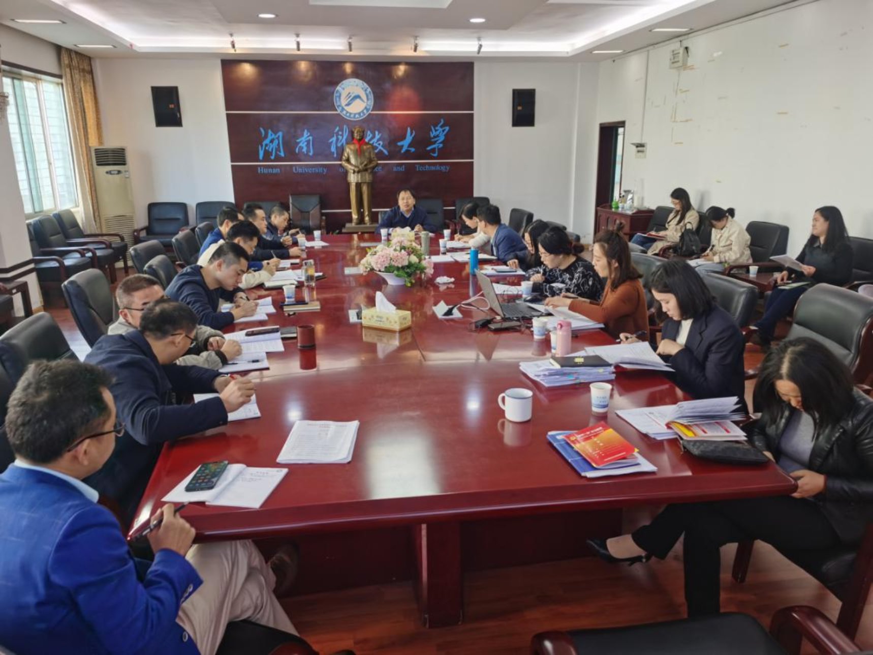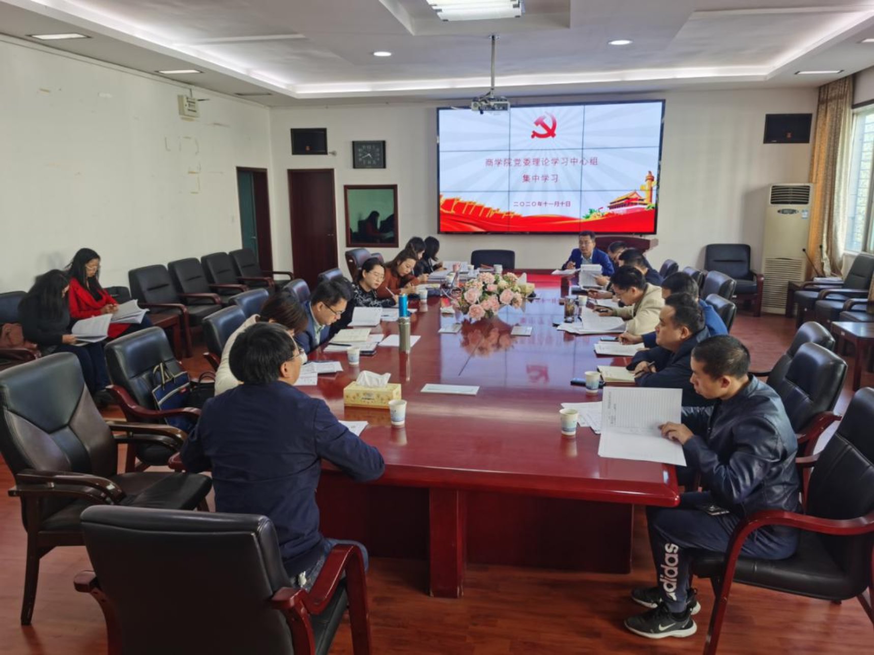 11月10日上午,公司党委理论学习中心组在三教301会议室进行集中学习。公司党委委员贺胜兵、潘爱民、叶文忠、傅早霞、邓淇中、赵瑞霞,副经理张志彬、全体党支部书记及三办主任参与本次集中学习。会议由党委书记贺胜兵主持。