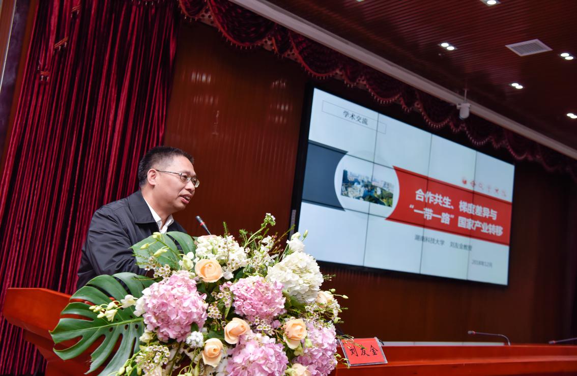 中国工业经济学会副会长、球盟会副董事长刘友金教授作学术报告