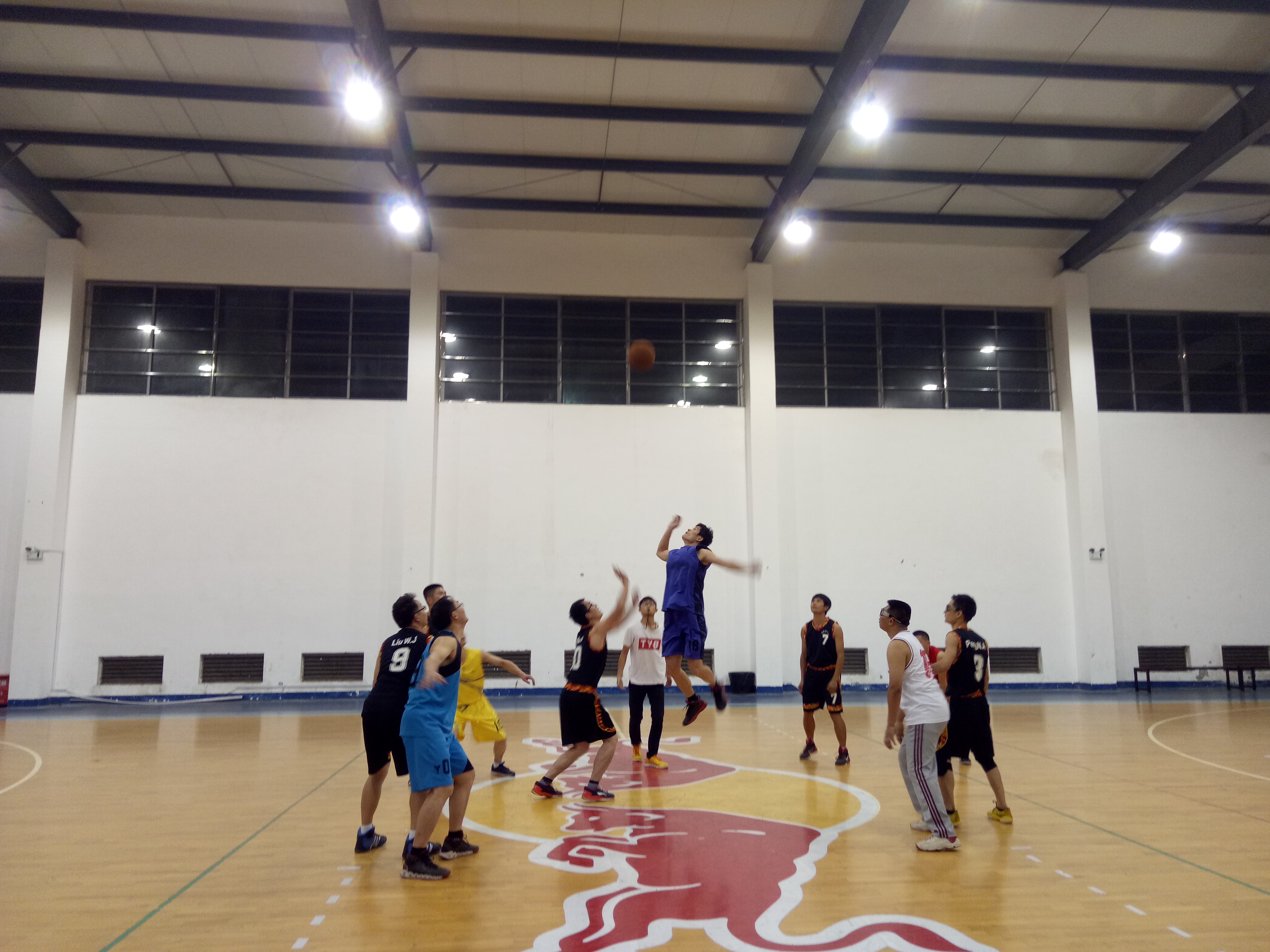 当日下午六点,向国成经理及各领导悉数到场,为公司球员加油助威。随着主裁判一声哨响,公司陈攀老师高高跃起率先跳球获得球权。赛中,我方球员陈应龙老师揽下数个关键篮板,将比分紧咬不舍。场边观众口号越来越响亮,这时柳卓超老师果断出手,三分投篮应声入网,上篮潇洒利落,尤其在第二节比赛中打入几波酣畅淋漓的快攻制造了比分小高潮,进一步吸引住了观众的目光。
