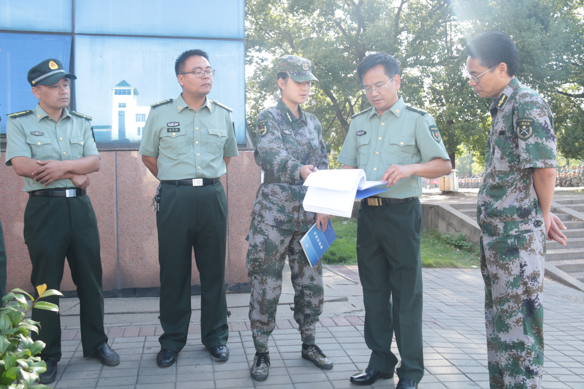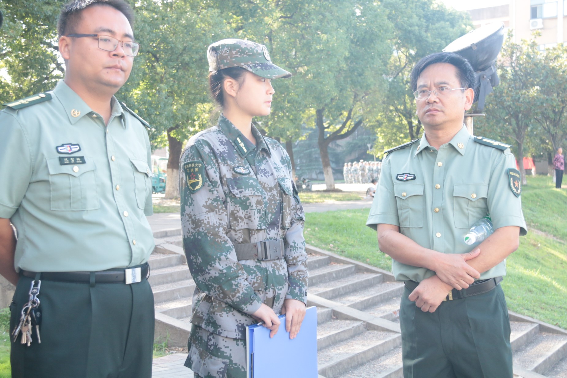 10月3日上午9点,球盟会保卫处处长朱理哲、副处长沈智祥等人莅临球盟会视察军训情况,公司党委副书记傅早霞、学工办主任陈攀以及军训团主要负责人到场汇报工作。