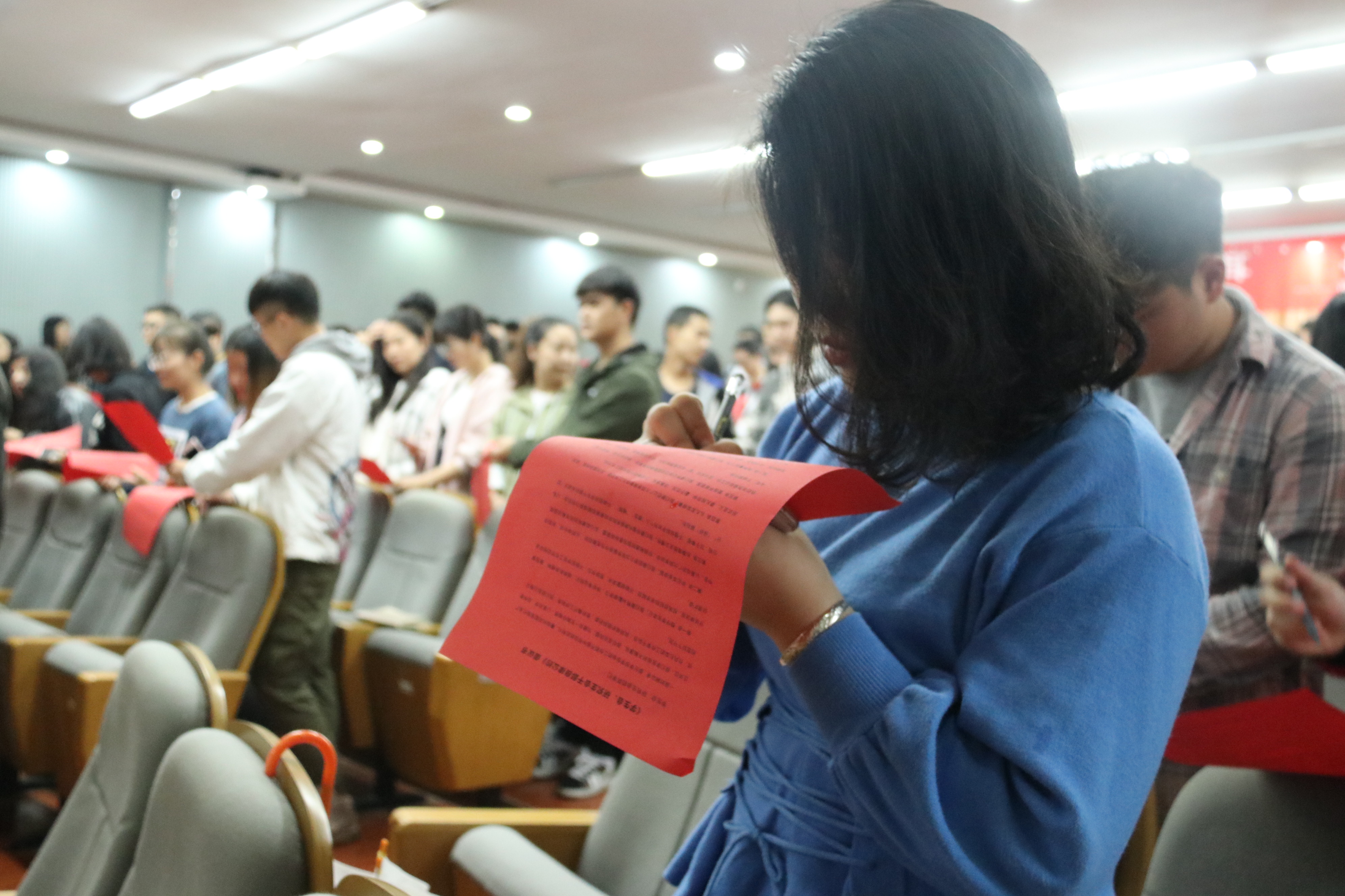 随后,翟广达带领在场所有员工干部逐条阅读《员工会、研究生会员工干部自律公约》,要求员工干部严格遵守,时刻谨记并以此为戒,作为自己的处事原则。该公约得到了在场员工干部的广泛认同,大家纷纷在倡议书上签名。