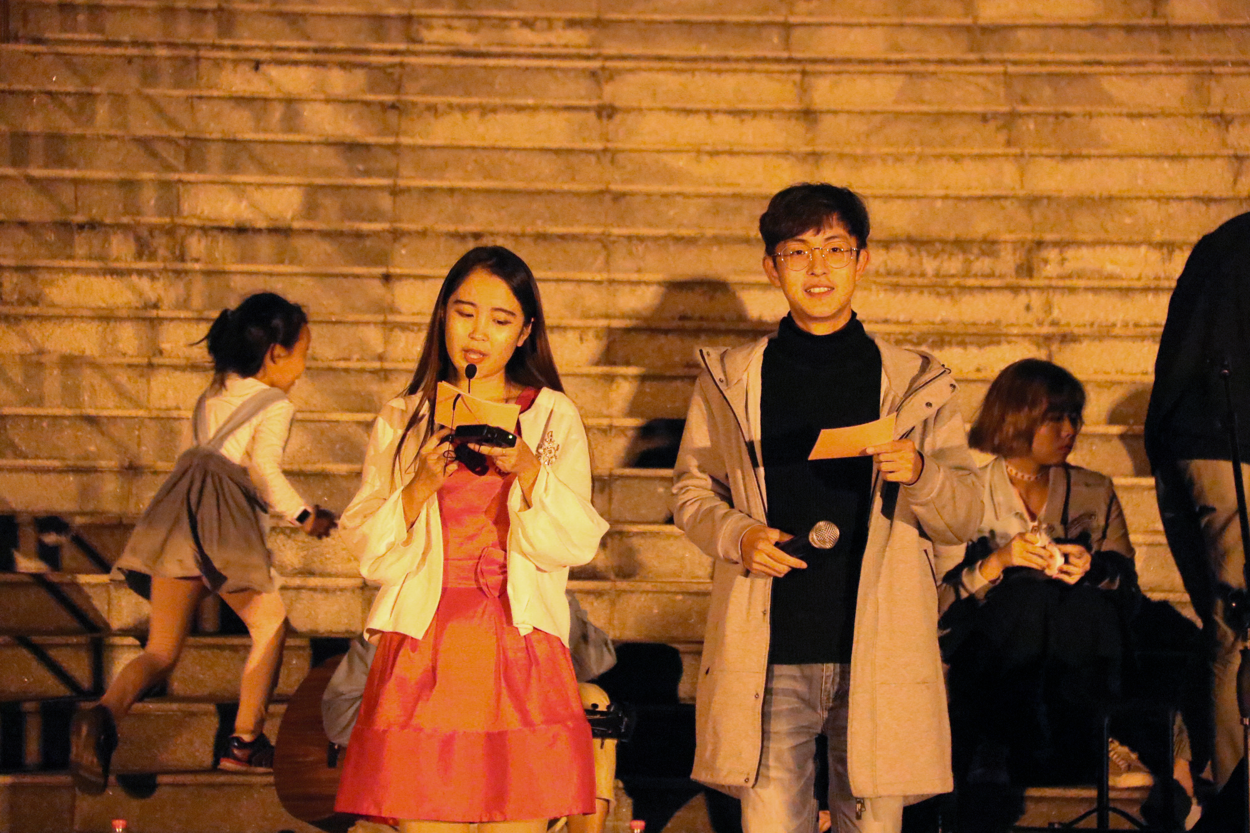 演出在由吉他协会带来的三首动听的民谣歌曲中拉开帷幕,舒缓的灯光,悠扬的音乐,营造了浪漫而又温馨的氛围。在座的18级新生们不约而同地打开了手机闪光灯,跟着音乐节拍左右挥动,现场恍如一片星光海洋。接着,轮滑社的成员给大家带来了一场无与伦比的“与轮共舞”。在演出中有一个需要观众配合的高难度动作,在现场氛围的感染下,新生们积极主动,踊跃自荐上台配合表演。在创新的舞文化和高超舞技的碰撞中,演出把现场推向了一个高潮。