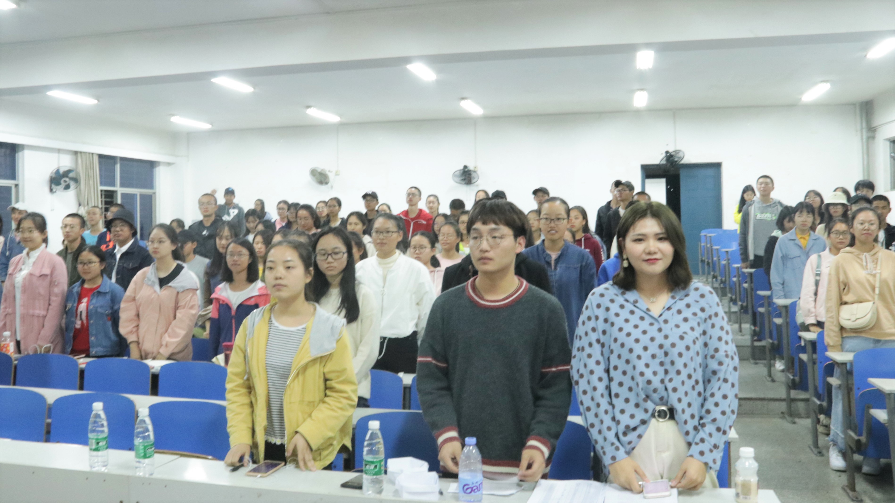随后罗佳祺、任慧分与王思语分别介绍了辩论的礼仪、技巧以及新生辩论赛的赛制和比赛流程。同时,她们欢迎在场的观众提出疑问并热心一一解答。提问环节过后由各班队长到讲台前抽取辩论赛辩题, 并根据抽到的序号公布对手与辩题,同学们热情参与,场面十分热闹。