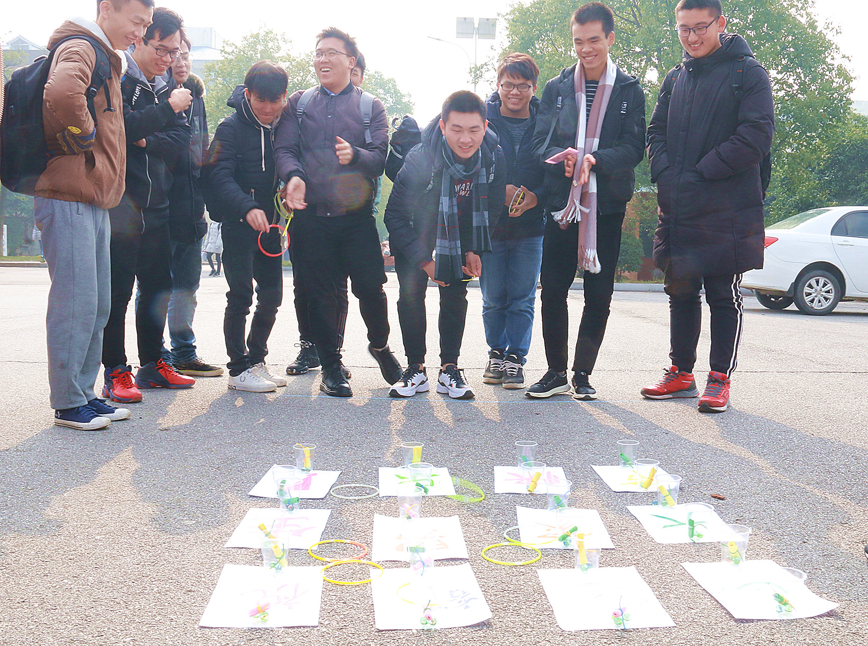 活动伊始,“圈住幸运”游戏场地便已聚集了大量同学。游戏过程中不少同学两两合作,齐心协力力求获得最好的分数,欢笑声和掌声充斥着整个游戏活动。此游戏活动负责人李梦菲表示:“为了给大家最好的游戏体验,在前期策划这个游戏时我们做了大量的实验,所以游戏能受到大家的欢迎我们也很开心和满足。”与此同时,其他游戏场地的活动也开展的如火如荼,整个活动现场气氛活跃。
