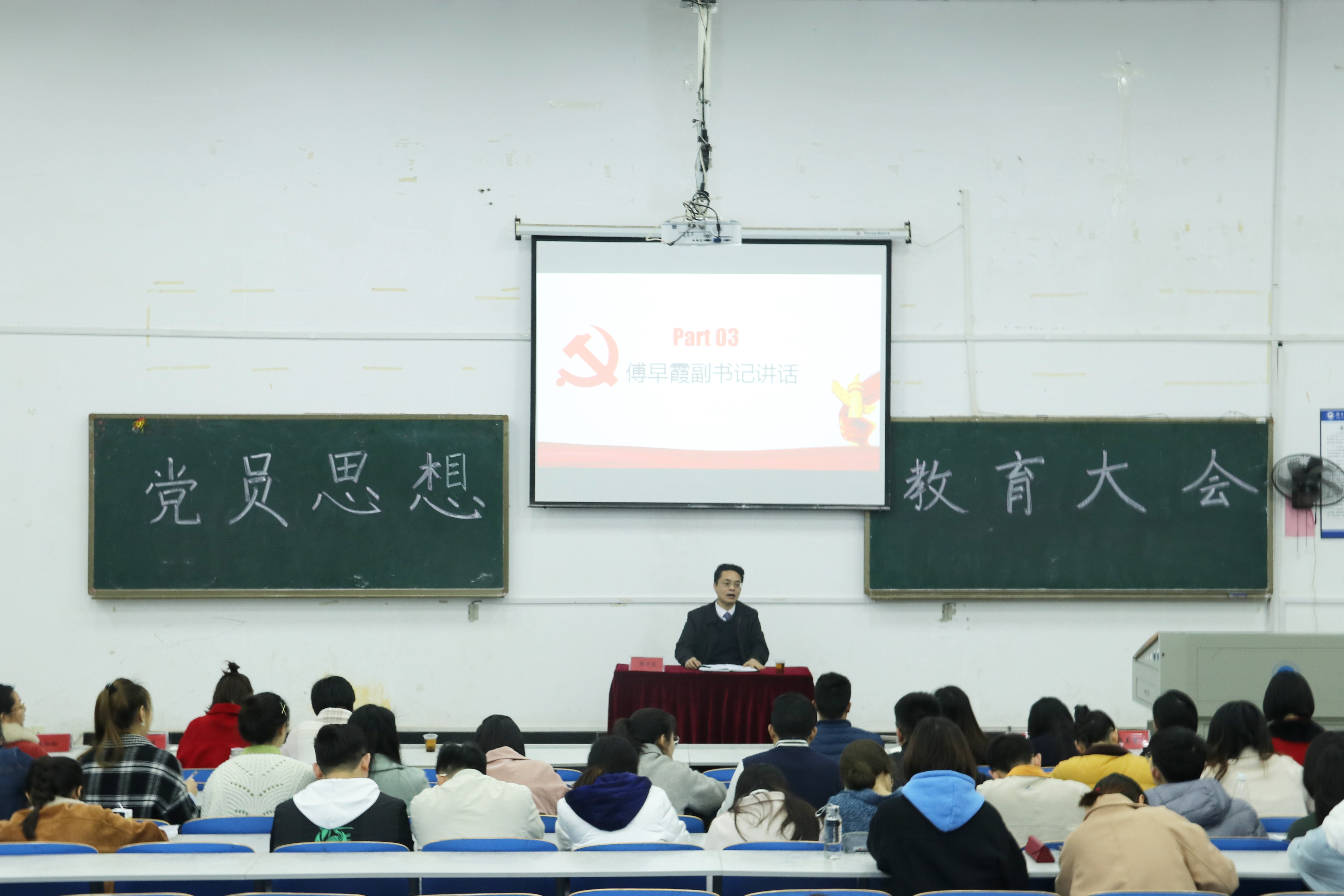 2019年3月26日下午,公司在一教204教室召开了新学期第一次党员思想教育大会,傅早霞副书记、各辅导员老师以及球盟会员工党员参与此次大会。