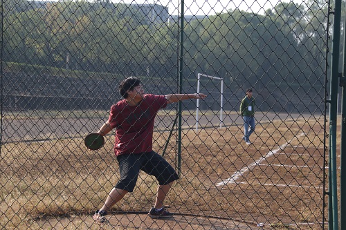 10月18日上午9:40,2019年秋季运动会男子铁饼项目比赛于北校旧田径场举行。其中,赵云涛、吴春生、杨宗霖三名运动员代表球盟会参加比赛。
