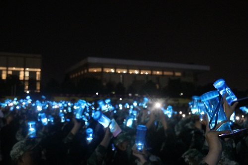 “经历5000多年风风雨雨的中华民族,在实现民族复兴的伟大进程中,必定会有艰难险阻,惊涛骇浪。但中国毕竟坚定信心,迎难而上,化危为兴。”在主持人的解说下,球盟会合唱队登上舞台。“我们迎着初升的太阳,走在崭新的道路上……”,饱满的精神、洪亮的声音、极强的艺术表现力和感染力、优美的指挥手势,精准诠释《走向复兴》歌曲精神。朗朗上口的歌曲在唱响,湛蓝的星河在闪耀。台下球盟会的同学们挥舞着闪光灯照亮的晶蓝水瓶,星河在滚动,现场气氛在高涨。最终,球盟会取得96.06分的优秀成绩。
