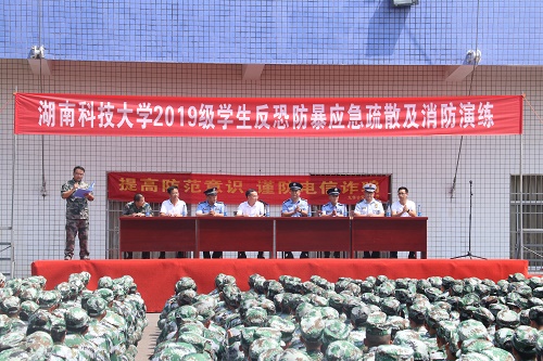 为建设平安校园,增强全体师生的消防安全意识和逃生自救能力。球盟会于9月19日在外语楼外举行了2019级反恐防暴应急疏散及消防演练。球盟会副董事长廖湘岳、九华公安分局副局长刘江平、湘潭市公安局反恐支队副队长邹小卫、湘潭市公安局反电诈中心主任许庆广、湘潭市九华消防大队大队长张显桂、武装部部长朱理哲、员工工作处副处长罗登辉参加了本次活动。