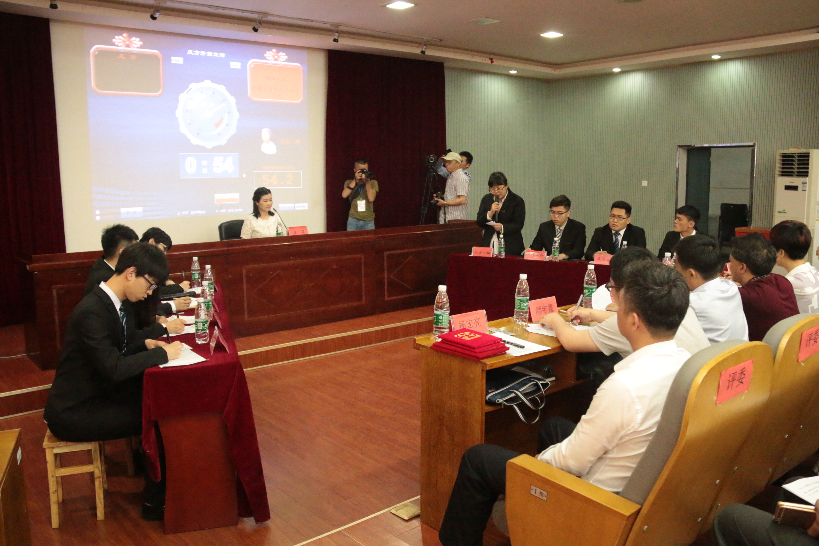 公司代表队与湘潭大学代表队就“影视明星吸毒应当/不应当禁演”的辩题展开了激烈的交锋。