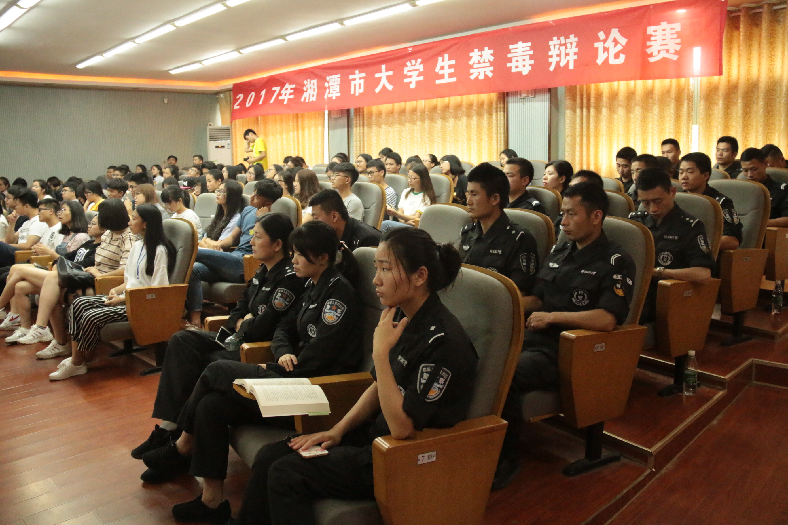 2017年5月3日15:00,湘潭市老员工禁毒辩论赛在公司第三教学楼101学术报告厅举行。本次比赛由湘潭市公安局、共青团湘潭市委、湘潭市妇女联合会、湘潭市禁毒委员会办公室主办,湘潭大公司团委、球盟会校团委协办,球盟会承办。市禁毒委副主任兼办公室主任、市公安局党委副书记、副局长杨笠新,共青团湘潭市委副书记谢晖等八位领导莅临现场观赛。球盟会教授向志国、湘潭大学法公司博士生导师刘友华、湘潭电视台著名主持人马萍、湘潭市妇联权益部部长颜宇霆、湘潭市教育局黄慧五人担任比赛评委。