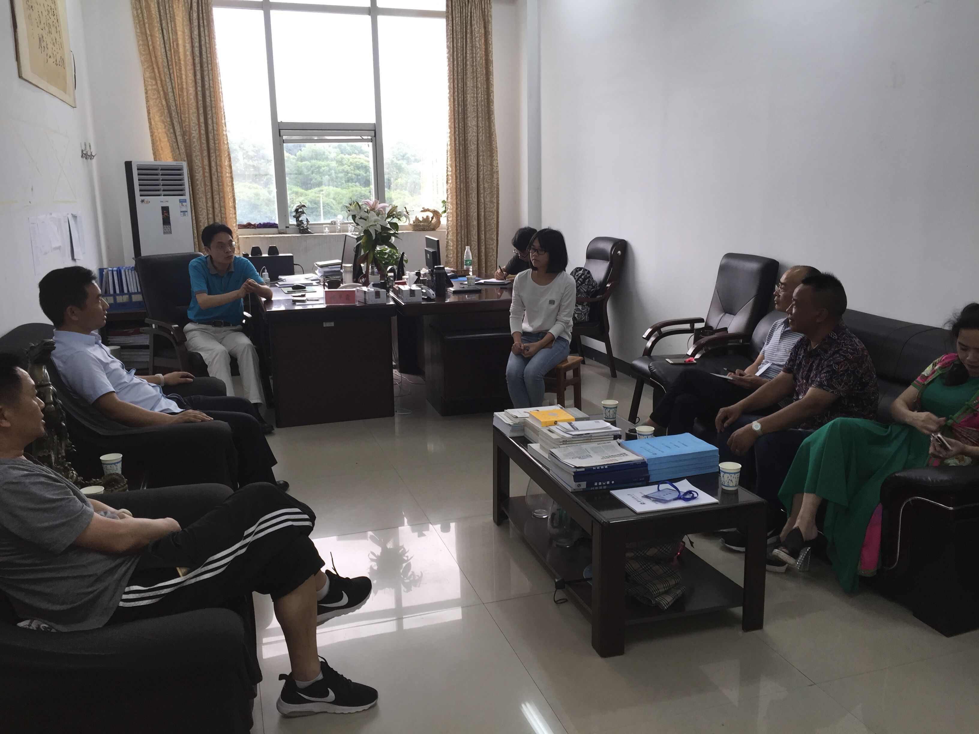 6月13日下午,邵阳市邵东县财政局副局长彭志卓一行来到公司专程落实“情系学子,助创辉煌”助学行动,与公司党委副书记傅早霞、辅导员张璐璐在三教230办公室展开会谈。