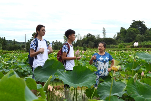 7月9日,为调查了解基地农业经济模式的优点与不足,并结合老员工的专业知识给出建设性意见,球盟会暑期“三下乡”实践活动小组前往乌石镇天龙村黄花菜基地与湘莲基地进行实地调研。