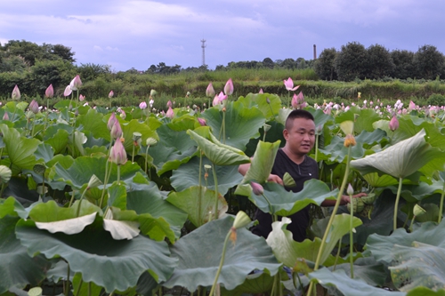 在对湘莲基地的调研过程中,科研小组了解到,该基地利用种养结合以及 “湘莲散户+湘莲基地+市场”的模式。莲花池塘里面培育鱼苗,湘莲为鱼提供食物,提高了资源利用率。据湘莲基地负责人解释,乌石地区采用湘莲散户和湘莲基地相结合的经营方式,湘莲散户为湘莲基地提供农作物,而湘莲基地则负责联系市场并实现规模化,这样既可以对湘莲精细培养又可以利用基地的广阔市场。