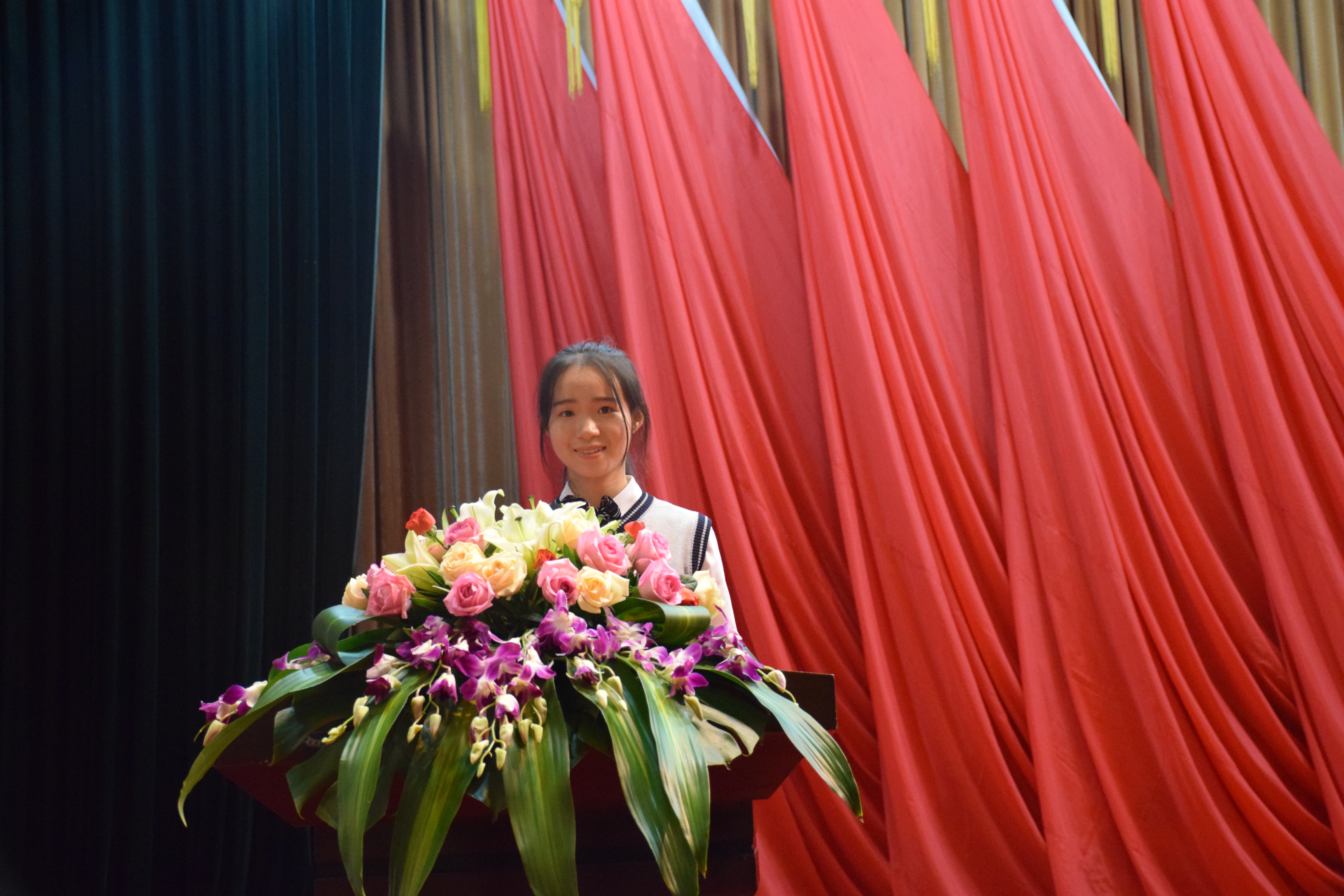 “超越自己、超越梦想,是给自己最好的酬劳。”老生代表2014级财务管理专业的李海彤告诫新生不要松懈,应当把握好大学时光,实现自我蜕变。他与大家分享自己大学的所见所闻,所感所想,从演讲获奖到顺利考过雅思,李海彤凭借合理的规划与不懈的努力打造出了属于他的核心竞争力。