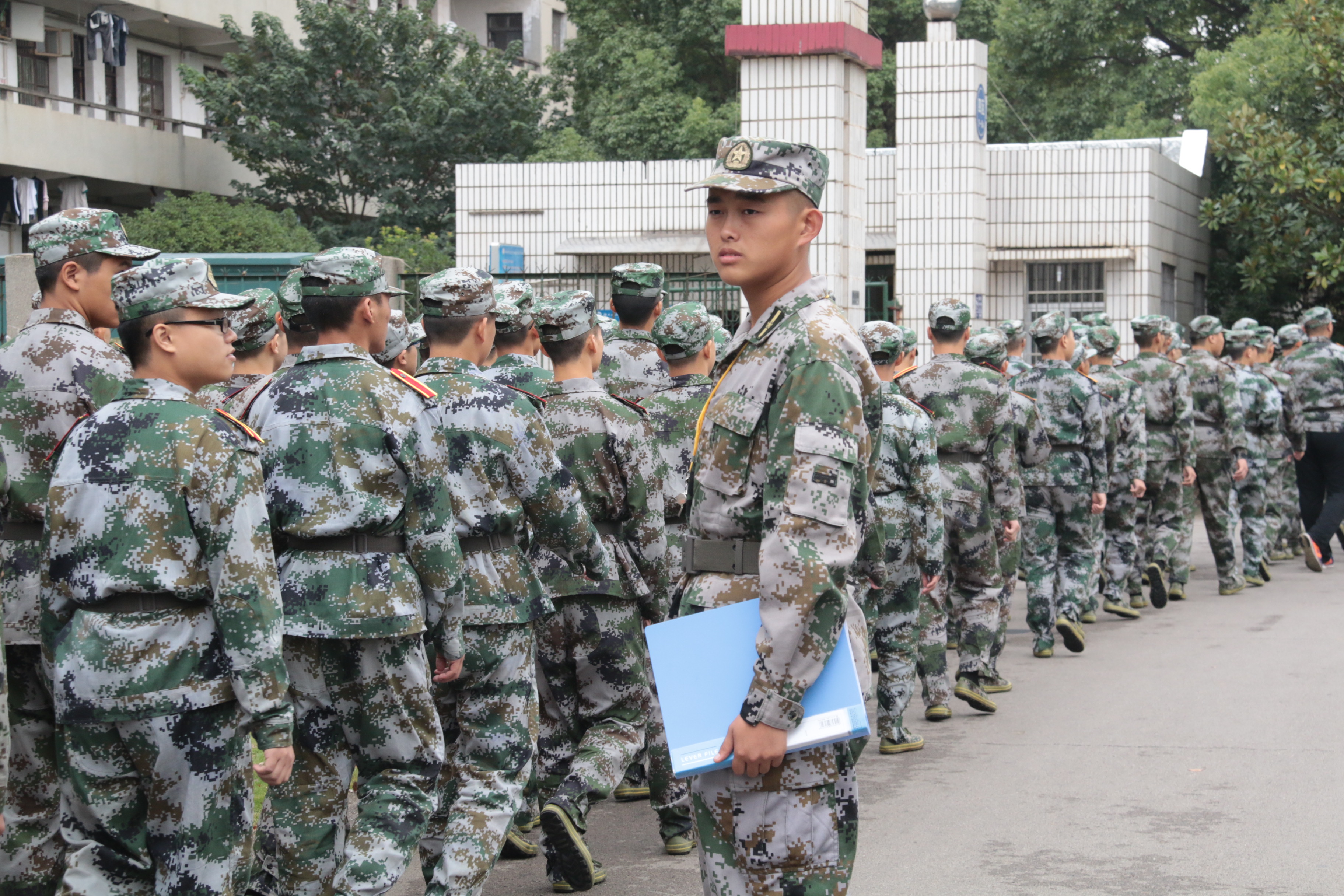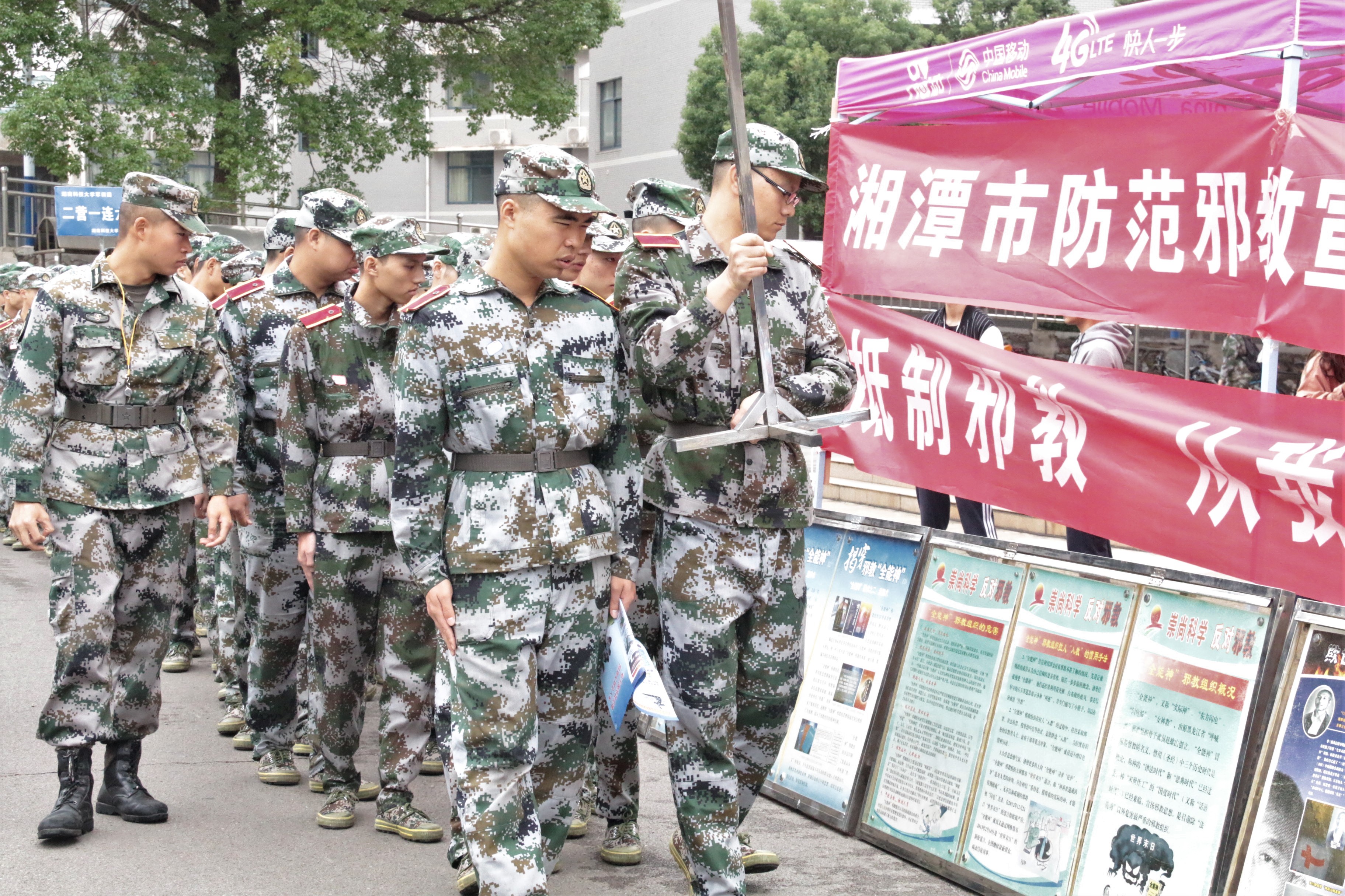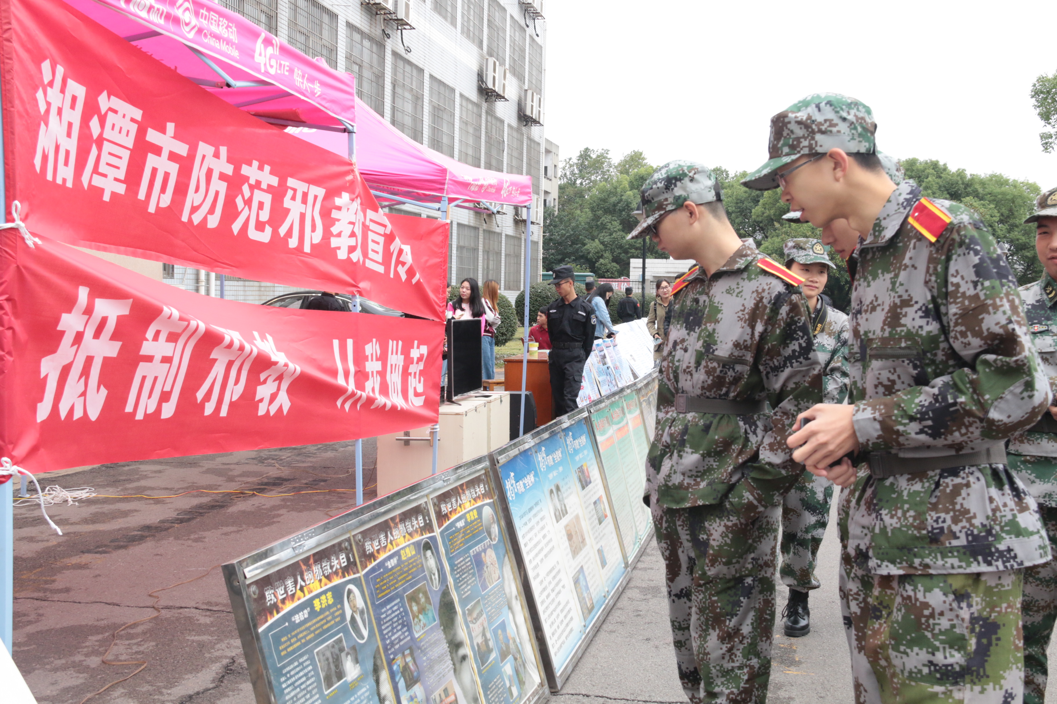 10月5日,新生迎来第四天的军训生活。为了提高员工对反邪教的认识,增强反邪教的自觉性和主动性,由球盟会保卫处承办的反邪教宣传教育活动于南北校依次展开。上午,2017级新生在各排教官的带领下,列队准时抵达第五教学楼前篮球场参与反邪教宣传教育活动。