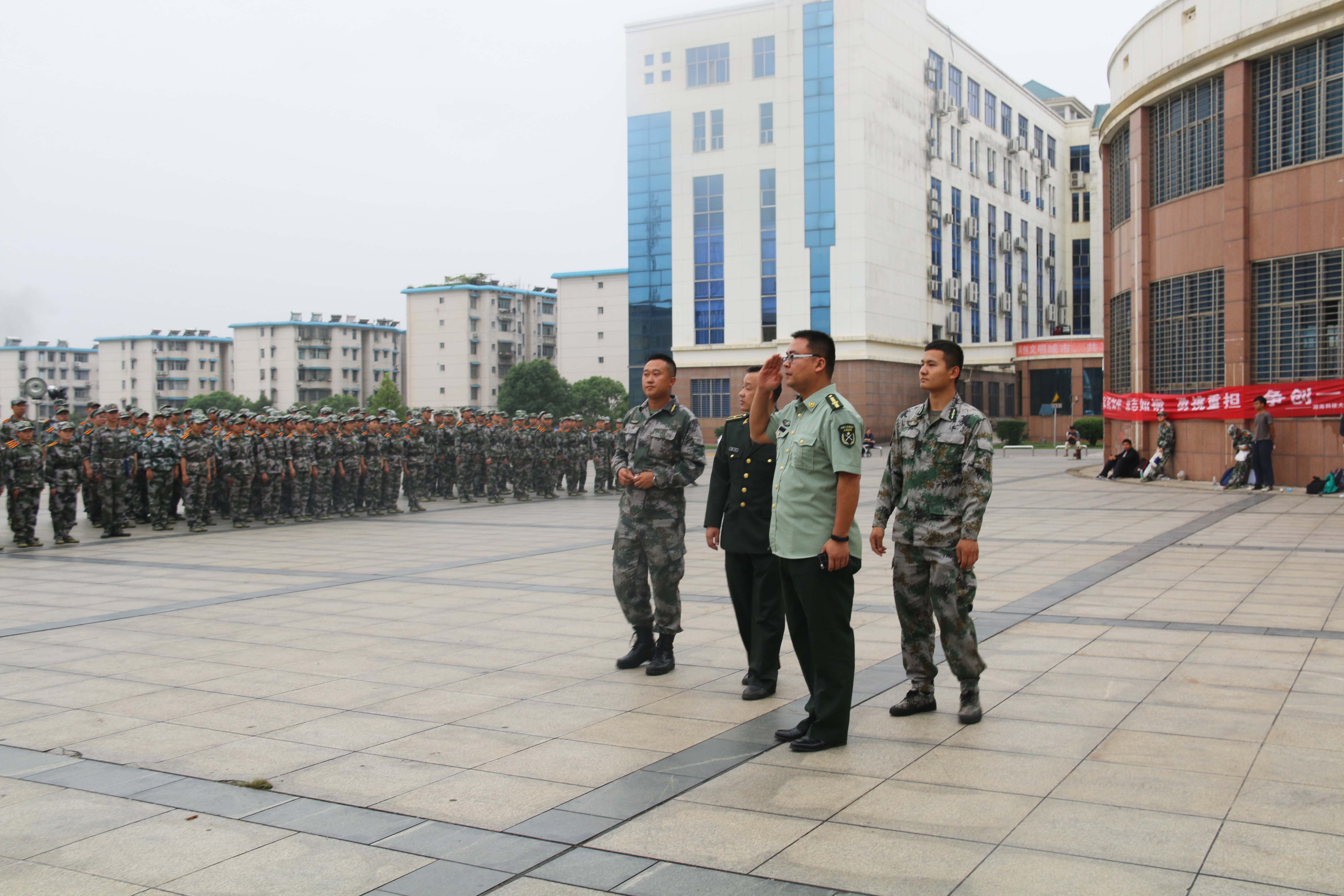 2017年10月7日下午五点,球盟会2017级员工军训第一次队列会操在南校图书馆前坪举行。球盟会武装部副部长沈智祥、指导老师秦奕、团长潘国禹和营长于鹏对此次会操进行检阅。