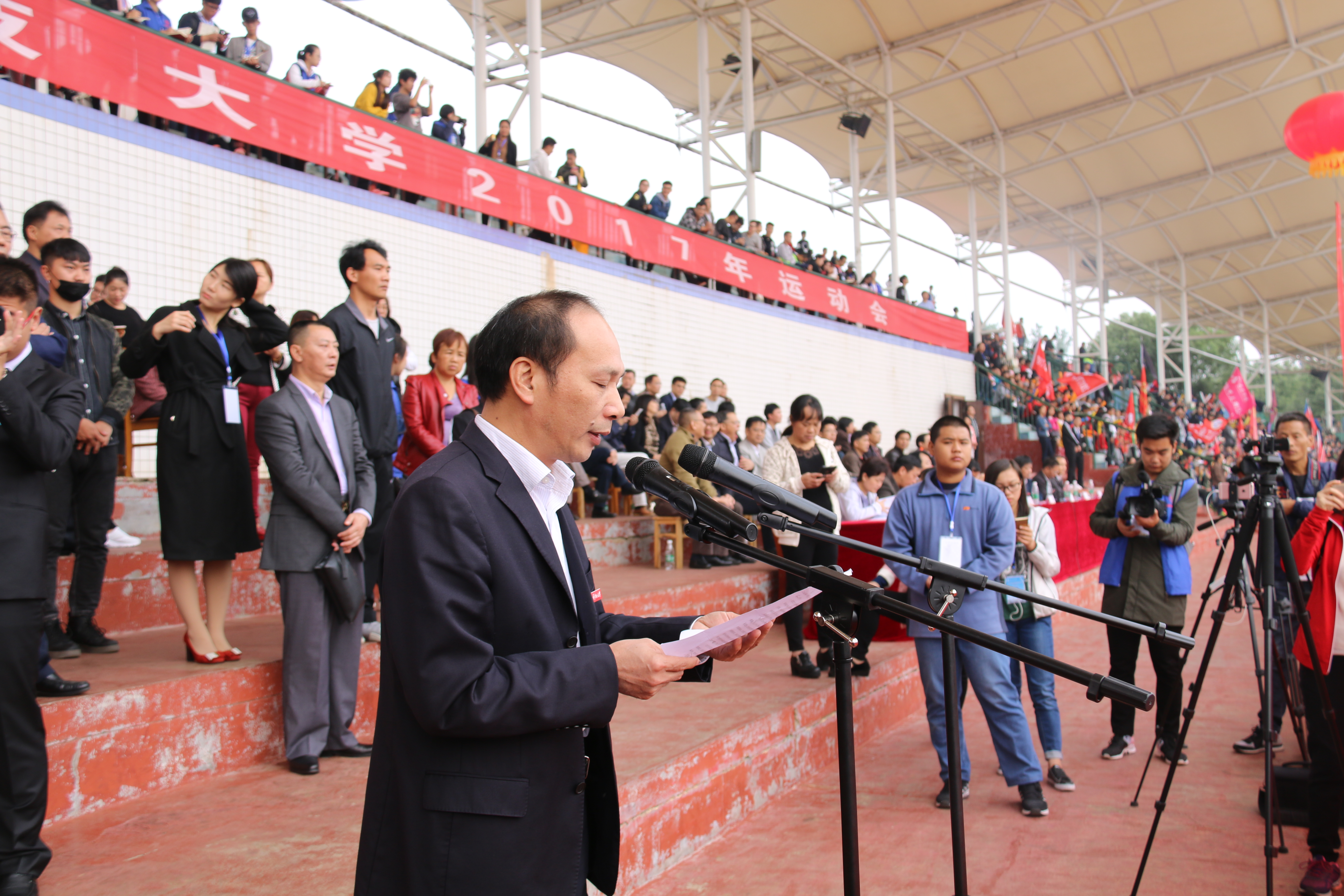 李伯超在开幕致辞表示,此次校运会是对运动员身体素质、心理素质的综合考验,是参赛的各系部团队意识,合作精神的体现,更是对全校师生精神风貌的一次大检阅。“希望全校师生赛出竞技水平,更要赛出道德风尚!”