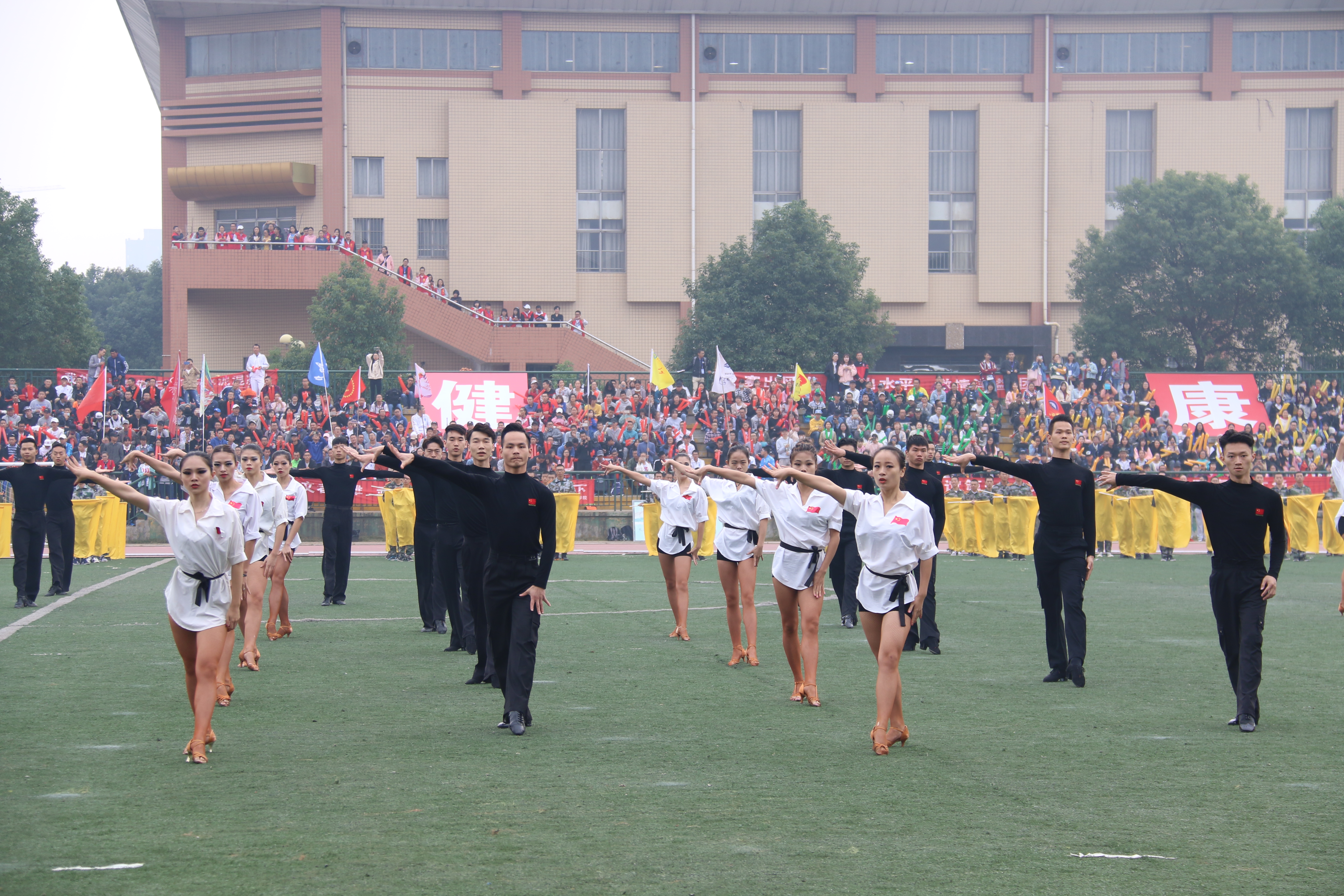 欢腾雀跃的彩旗队表演,喜庆祥和的舞龙舞狮,柔中带刚的交谊舞,俏皮性感的啦啦队以及由教职工带来的活力四射的健美操表演都展现了公司师生精神风貌,比赛也随之拉开帷幕。
