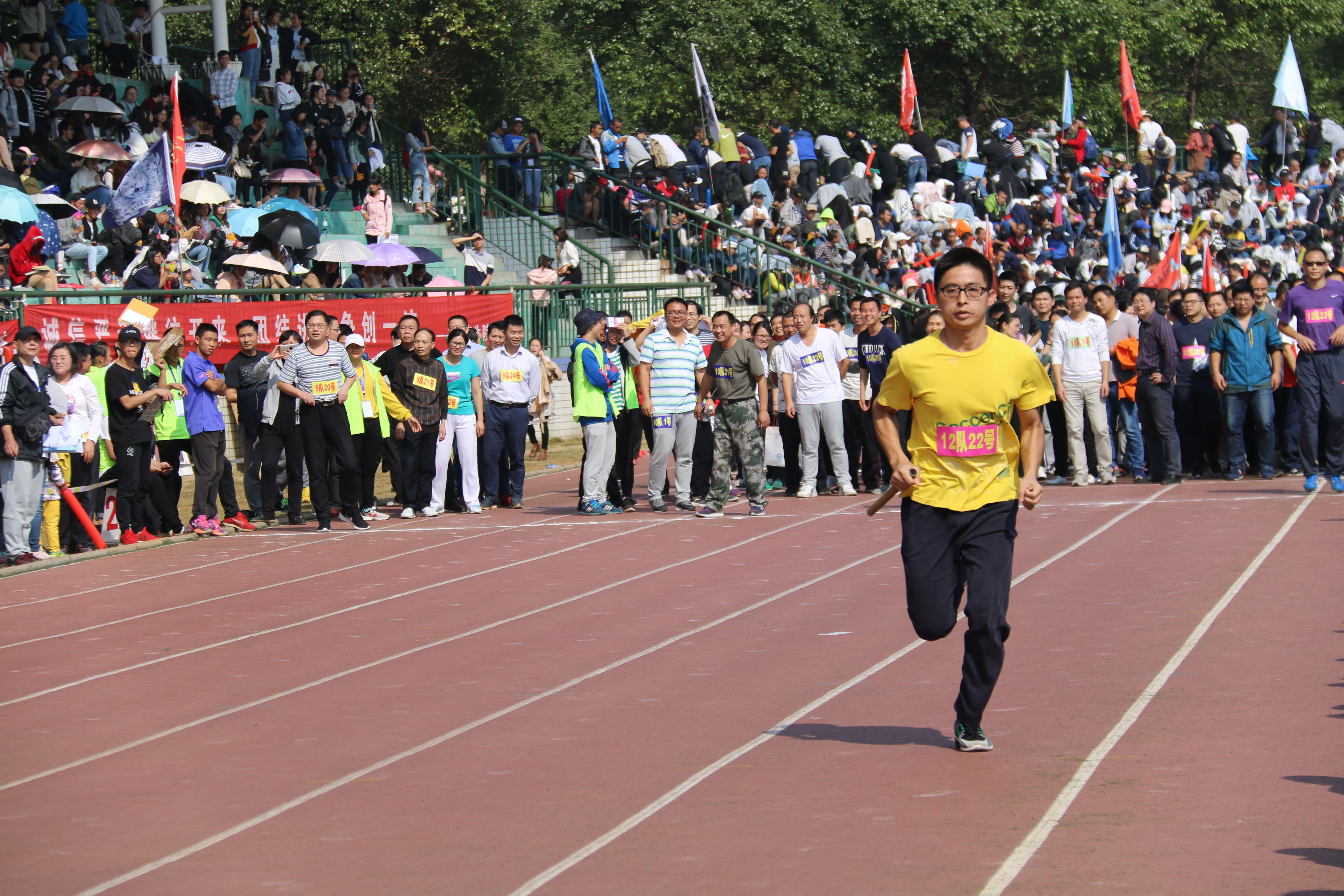 正式开始之前,球盟会教职工参与的100米×30人“团结杯”接力赛已经将现场的气氛点燃,球盟会30位教师代表公司参加了这次“别样”的运动会。教师们紧握接力棒,目光专注,以此来回应观众们高涨的热情。“预备——跑!”教师们奋力前行,一马当先,以领先一百米的速度夺得了第一名。