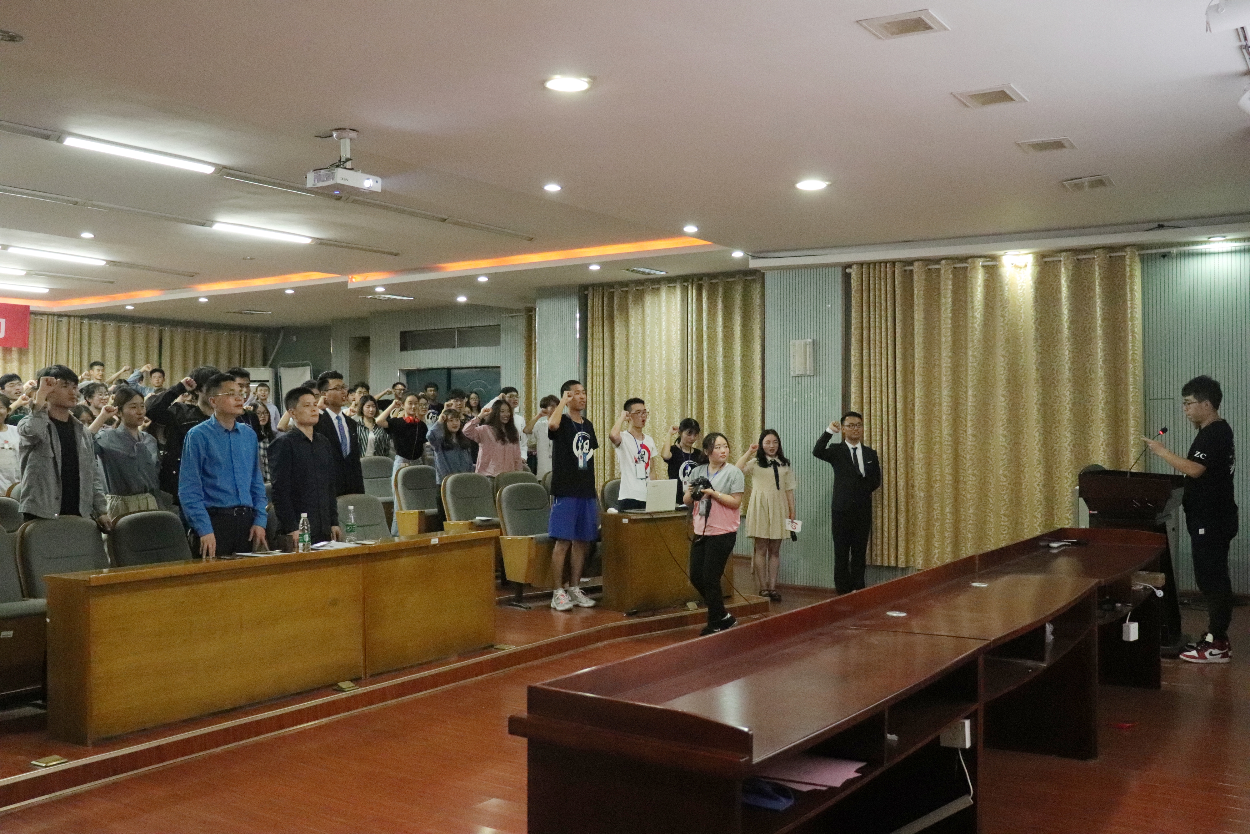 在活动开始之前,公司先于5.4-5.6三日对2016和2017级分别举行了班级共青团团员宣誓大会。在全体团员激昂的国歌声中,此次宣誓活动拉开了帷幕。随后,球盟会全体共青团干部佩戴团徽齐唱《光荣啊,中国共青团》团歌。紧接着,在党委副书记傅早霞同志的带领下,全体成员面向团旗,紧握拳头进行庄严宣誓:“我志愿加入中国共产主义青年团,坚决拥护中国共产党的领导,遵守团的章程,执行团的决议,履行团员义务,严守团的纪律,勤奋学习,积极工作,吃苦在前,享受在后,为共产主义事业而奋斗。”这铿锵有力的宣誓声彰显了作为一名共青团员的光荣感和使命感。最后,团委第一副书记罗莹就共青团员的权利和义务等问题进行了发言。