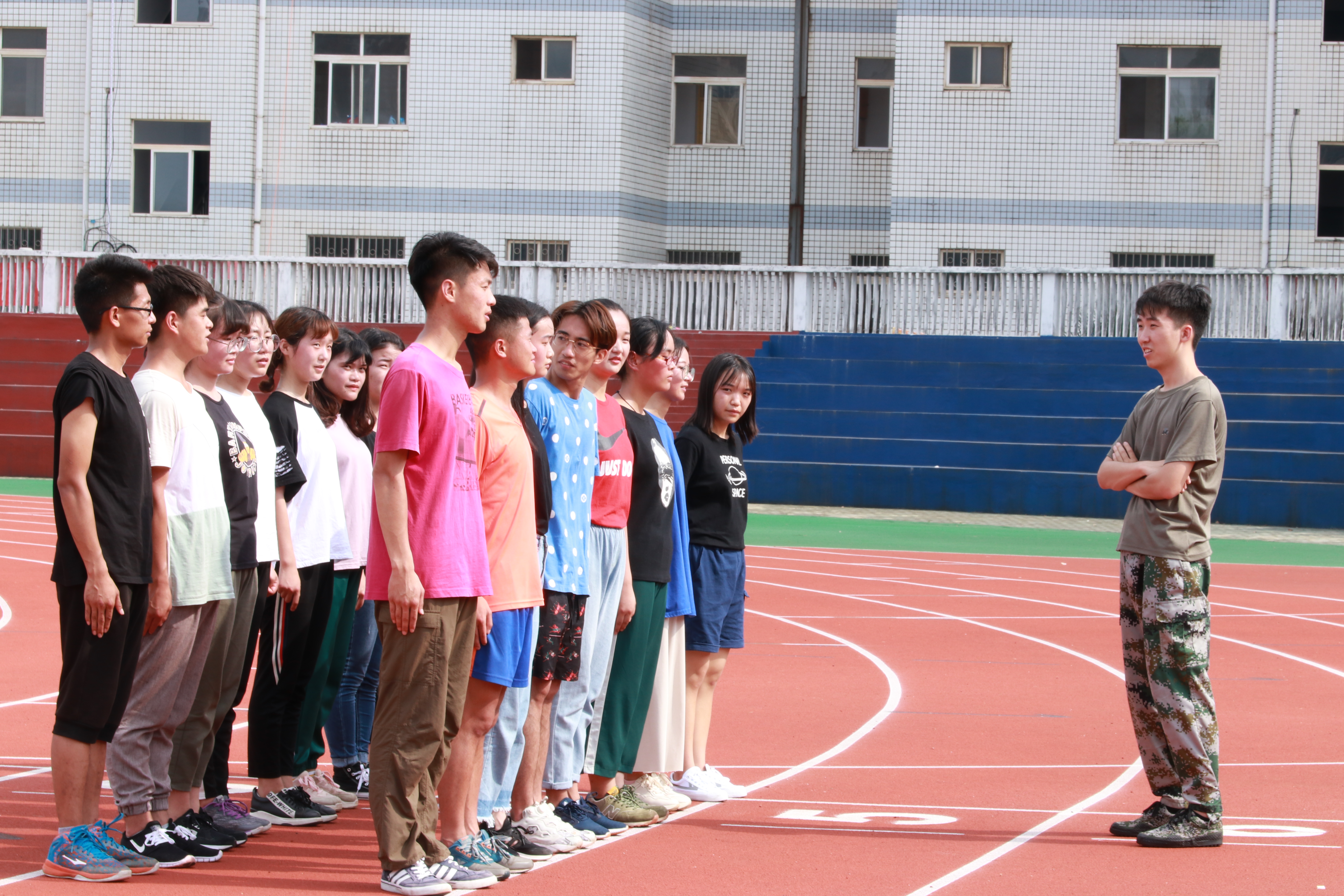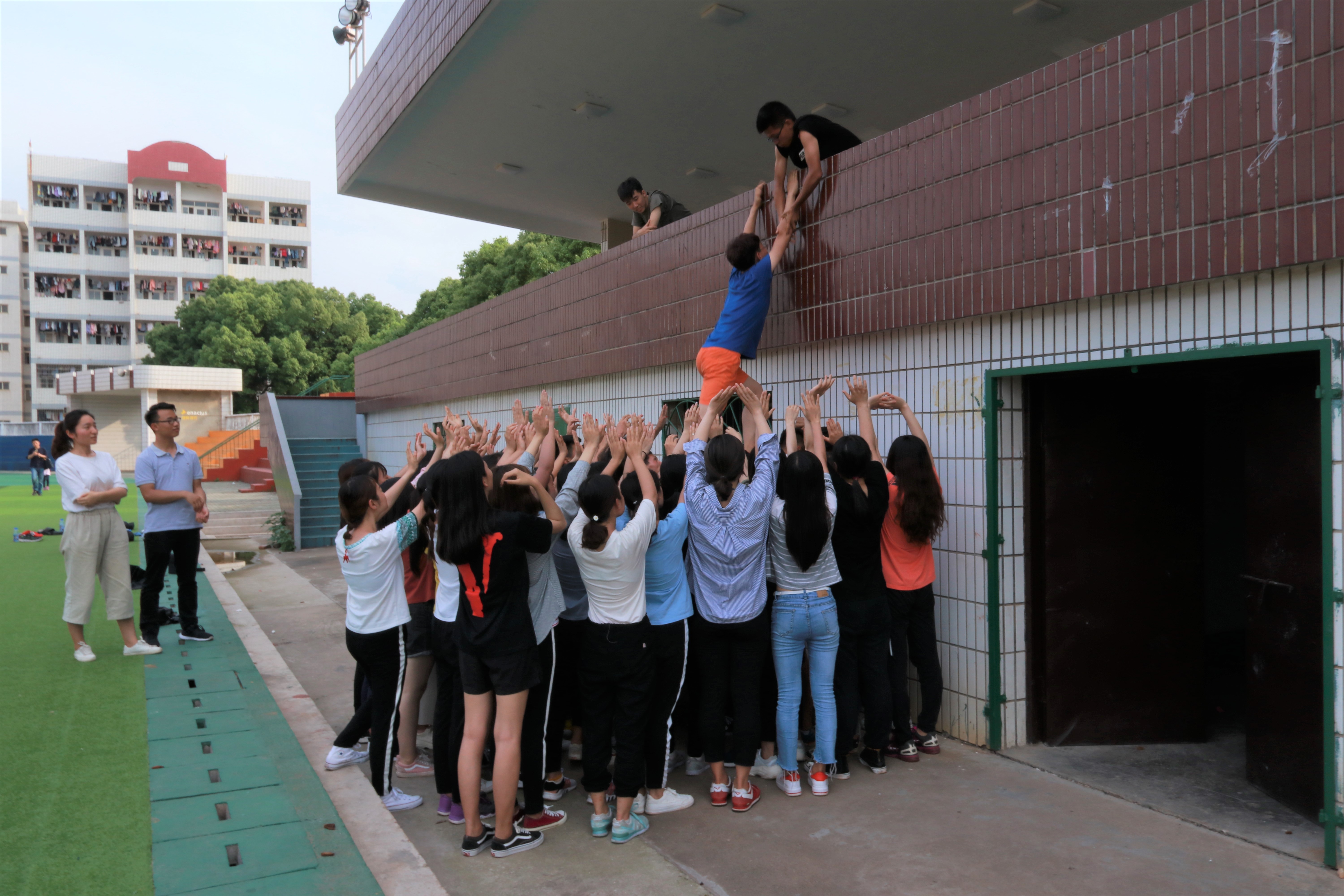 此次活动分为上午和下午两个时间段,活动内容丰富多彩。上午活动以团队游戏为主,主要通过“占领领地”、“60秒不NG”、“寻宝大行动”、“吃货接力赛”等活动激发参与者个人潜能和培养团队精神,注重提高参与者的心理素质和随机应变能力,寓教于乐,使参与者在活动中展现自我,提升自我。下午活动则迎来了军训团成员的加入,他们对各位参与者以军训的形式进行了一系列体能训练。烈日当空,各位参与者均不畏辛苦,汗如雨注也毫不退缩。而随后的“逃生墙”活动也充分向各个参与者传达了团队精神的重要性,各位参与者齐心协力,最终圆满完成活动。