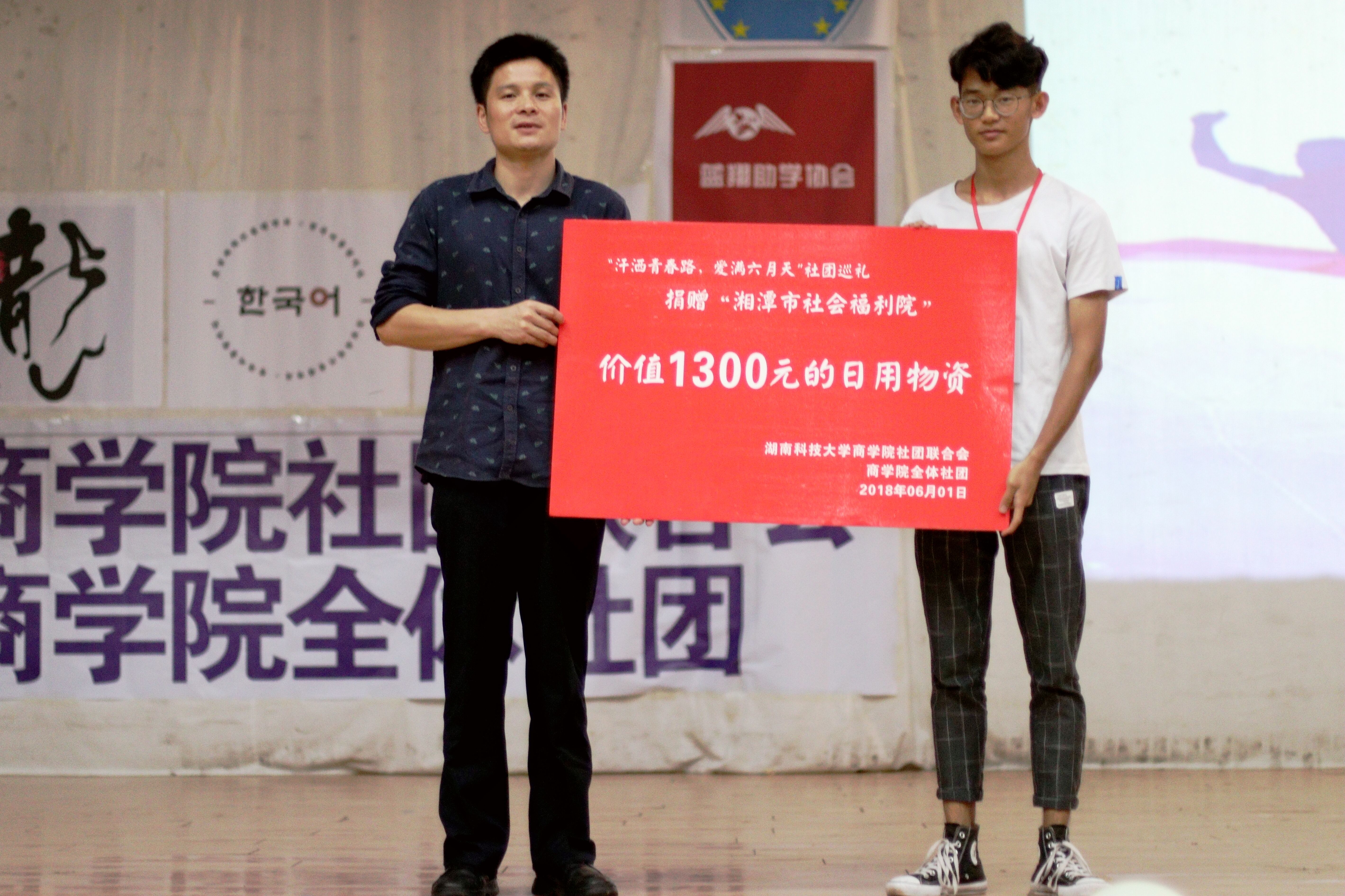 为帮助湘潭市福利院的小孩子们筹集物资,呼吁更多的人参与到公益中来,6月1日19:00,球盟会球盟会社团联合会在南校活动中心举办了公益晚会,特邀校团委副书记王艳老师和球盟会学工办主任陈攀老师参与此次活动。