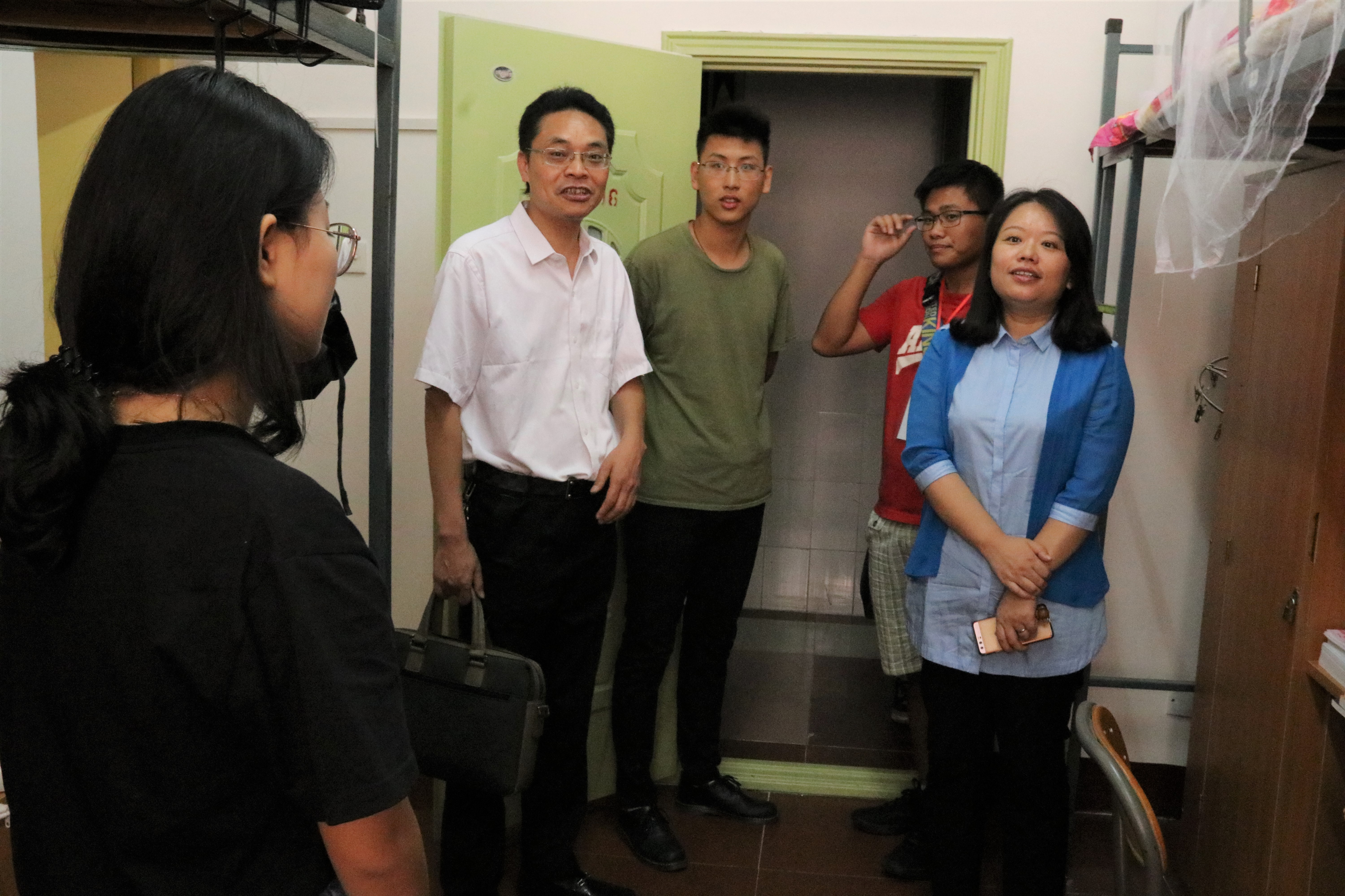 每每走进一个宿舍,院领导首先代表公司对新同学的到来表示欢迎,查看了新生的宿舍情况,与之亲切地交谈,了解新生“适不适应公司生活?”、“食堂饮食是否合乎口味?”、“对所学专业有怎样理解?”等各方面的想法,询问同学们的家庭和学习情况,并耐心解答了同学们提出的各种问题。走访中,院领导承诺在日后的学习和生活中,会尽心尽力为同学们保驾护航,师生之间还时不时拉起家常,其乐融融。经理仇怡还特别嘱咐同学们要尽快适应老员工活环境,科学规划自己的老员工活,合理安排时间,树立正确的目标;在生活中要养成良好的习惯,加强锻炼身体,积极参加课外活动,全面提升个人素质和能力。