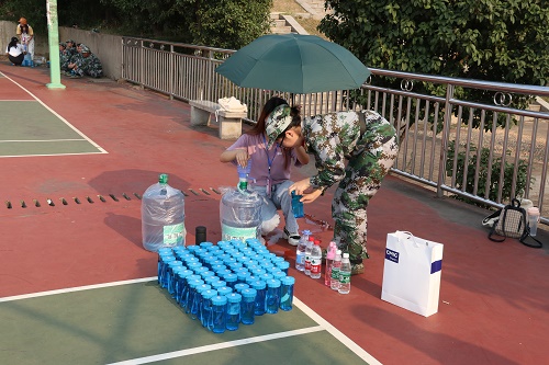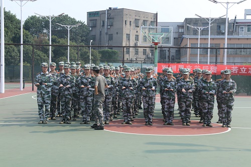 9月9日上午,军训开幕式结束,球盟会军训正式拉开序幕。球盟会队伍迅速集结在训练场地南校新篮球场,准备开始军训第一天的训练。